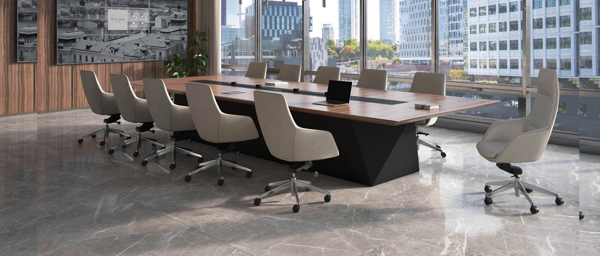 如何挑選最好的會議室桌椅設(shè)計會議室的關(guān)鍵在于舒適性和功能性。畢竟,您可能會在房間里花費一到四個小時來參加重要的協(xié)作會議或董事會會議。因此,選擇合適的會議桌椅以使您、您的團隊和任何客戶在空間中感到舒適至關(guān)重要。 -